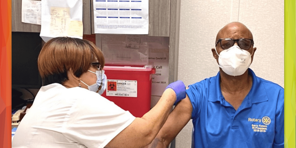 We began our Be A Hero! Wear A Mask! campaign back in August and have expanded it to Be A Hero! Wear A Mask! Get Vaccinated! and are adding it as an overlay in our People of Action photo. I this one Rotarian Willard John is getting his second vaccine.